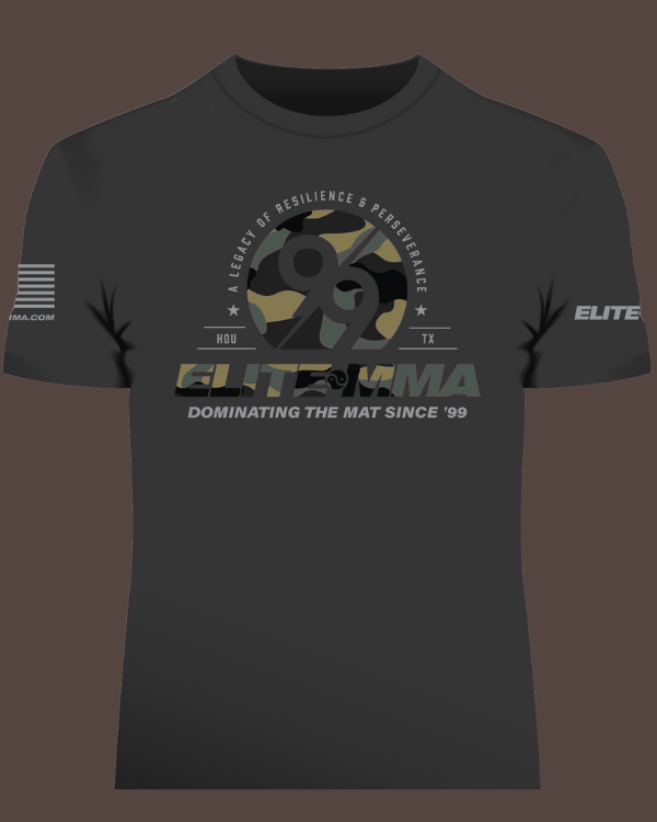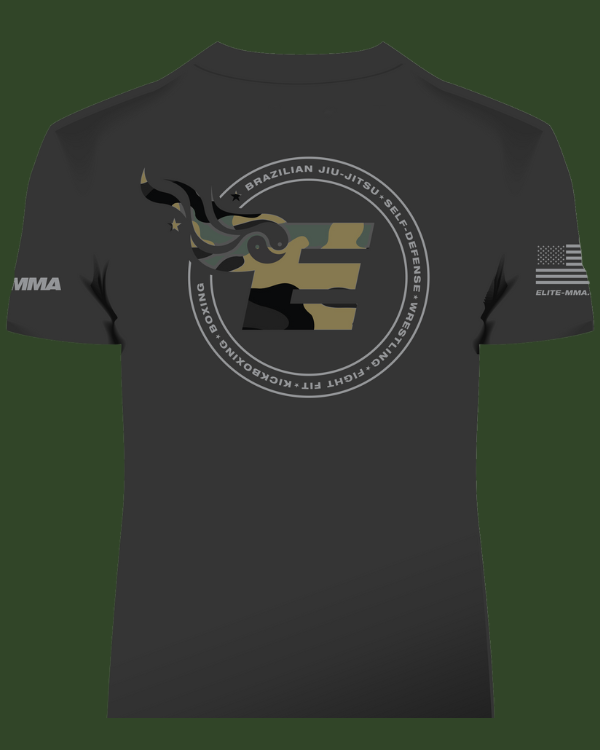 Crafted from lightweight, moisture-wicking fabric, it keeps you cool on the mats, in training, or on the go. The clean white base represents discipline and clarity; the camo splash pays tribute to the fighters, coaches, and students who’ve carried the Elite legacy forward since day one.